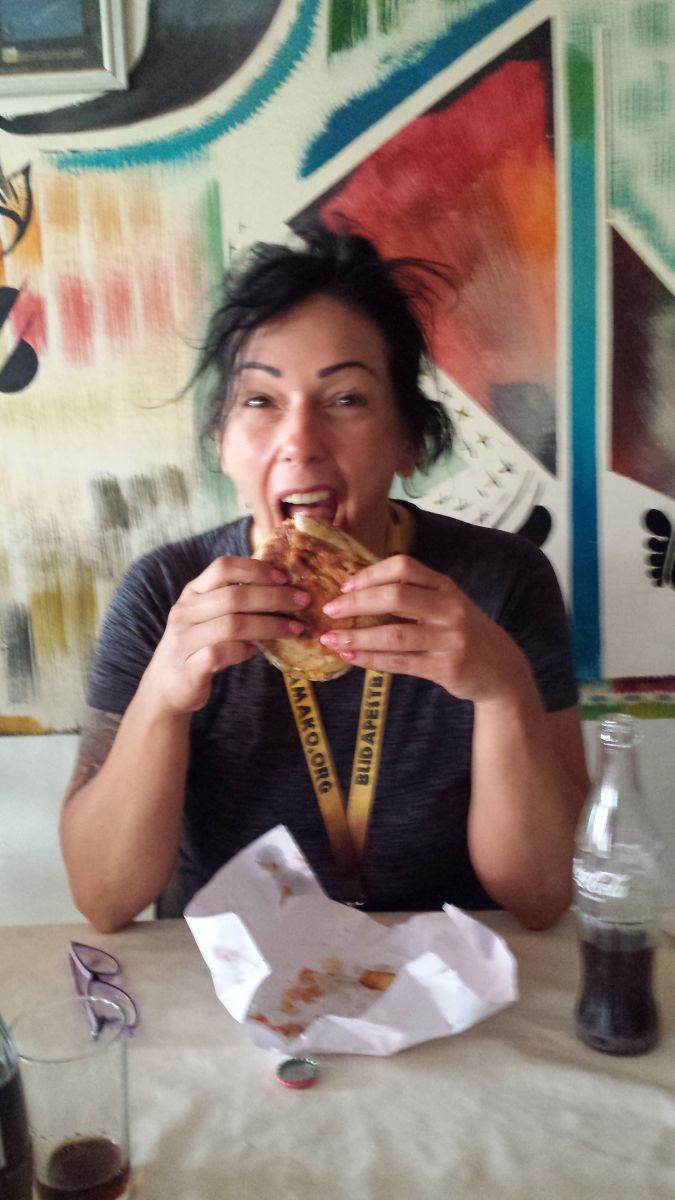 Volt még egy megálló, én nem tudom miért éhezik itt így ki az ember, mindenki mondja, hogy tökoké a kaja, nekem nem megy le már szinte semmi, ha még egy protein szeletet vagy kekszet meglátok tutira elhányom magam, jó kis támogatás ez nekem a későbbi diétám visszaállításához. Eh pfejj. No szóval mecset utáni napon a sátoros alvás és lövések után begurultunk a Best Burgerbe Tambacoundában, ahol gyanúsan nem volt kajaszag. Kértünk, hozták, marha jó az üveges kóla nem édes mint Európában, és egy laza óra leforgása után jöttek a börgerek valahonnan máshonnan, tálcán, becsomagolva. King burger kérem azt jelenti, hogy minden belemegy a cipóba és becsomagolják papírba, egyed. A könyökömön csorgott a lé, na. Gasztro ötös adott körülmények között.